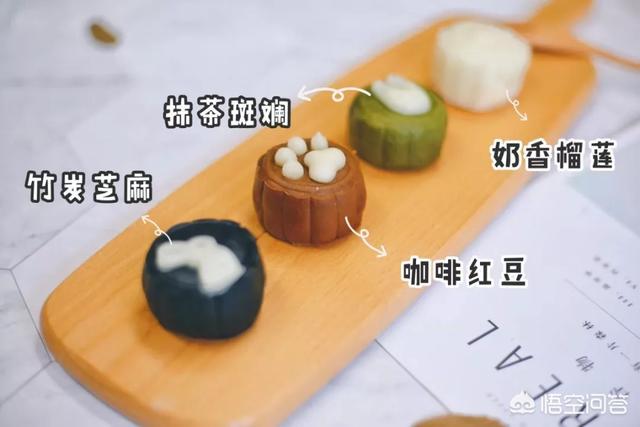里面有奶黄、抹茶和豆沙等口味,记住,长得好看的月饼口味大体都一样哈哈哈哈。