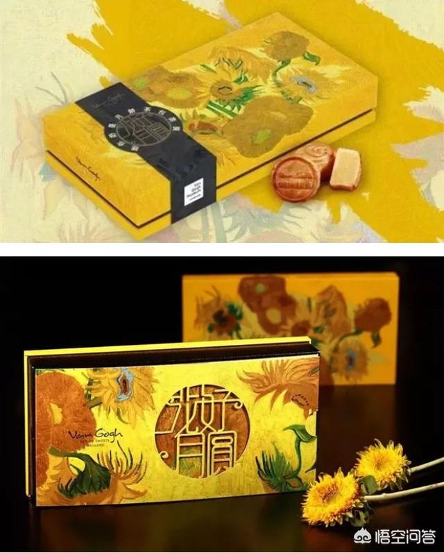 这是一款由梵高博物馆官方授权的奶黄月饼礼盒,采用全球限量的形式进行发售。非常明显,月饼盒上的图案正是梵高的<向日葵>,