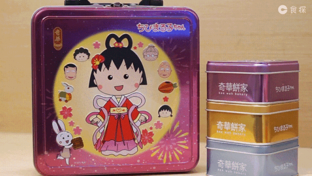 同样可爱的还有香港老字号奇华饼屋跟樱桃小丸子合作款,也是可爱到哭了。大包装盒上有小丸子本丸的大脸。