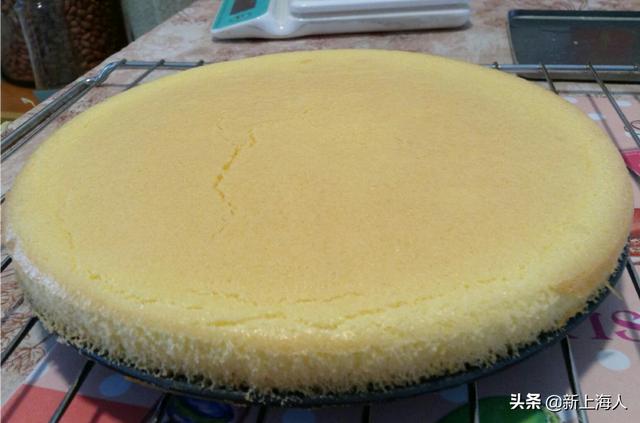 ●12.烤箱预热130度,放中下层,15到20分钟左右时,调到160度,再烤20分钟左右。这里用先低温后高温的方法,这样烤出来的蛋糕不容易开裂。也可以用160度左右的温度烤30到40分钟。这里要注意,每台烤箱的温度都不同,一定要按自家烤箱的脾气调整温度和时间。●13.戚风在烤到30分钟左右的时候会涨至最高点,这时就可以常看着点,如果开始回落就可以出炉了。注意出炉后,要震模,在距桌面十公分的地方,双手松开模具,让模具垂直落在桌子上,然后倒扣在网架上放凉,然后脱模待用。