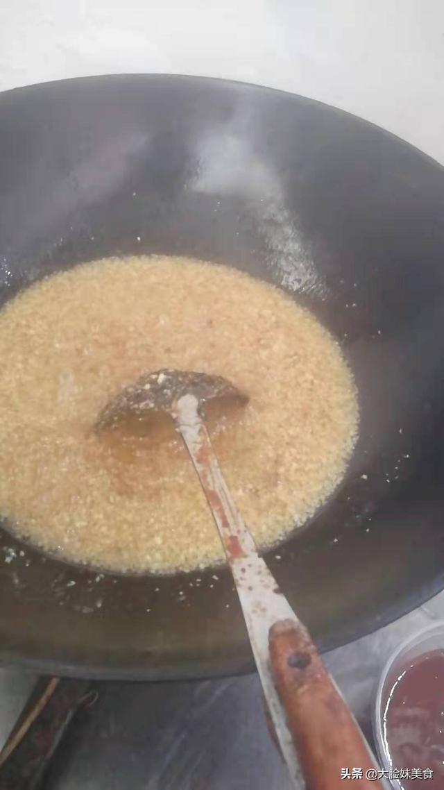 往锅内加入1斤甜面酱,期间要不停搅拌。