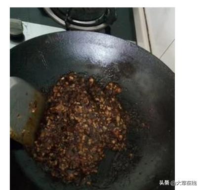 准备猪肉50克(也可以准备牛肉),姜、豆瓣酱和甜面酱适量 做法:猪肉剁成肉末,油锅倒入油烧热下入姜末,肉末翻炒,变色以后加入葱末翻炒