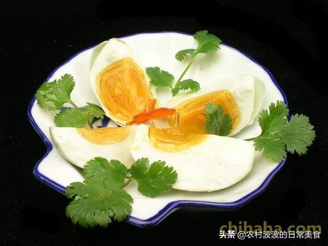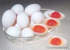 7.五香咸鸭蛋的腌制。取花椒、桂皮、茴香、生姜、精盐,用等量水煮沸20分钟,倒入一瓷坛内,将洗净的鸭蛋泡入,封严坛口,40天后即可煮食。这种鸭蛋香味浓郁,微咸可口。