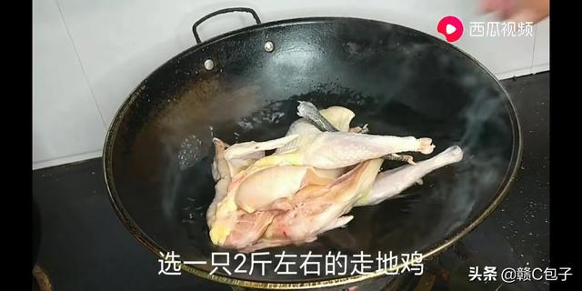 1、选一只2斤左右的鸡。我这里买的是山上的走地鸡。估计也是喂了饲料的。但是在山上跑了一下的。冷水下全鸡,煮20多分钟左右,筷子插的入。