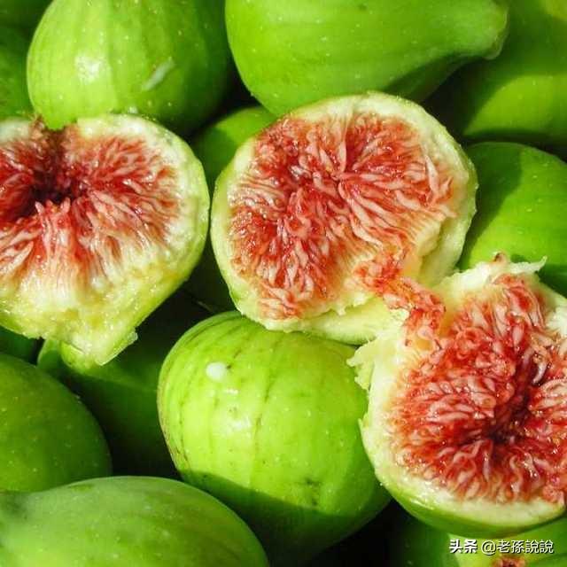 第四种:青皮无花果 该品种树势旺盛,主干明显,侧枝开张角度小,多年生枝为灰白色,叶片大,粗糙,色绿,裂刻不足叶长的1/2,叶形指数为1.12。果实扁圆或倒圆锥形,果形指数为0.86左右,成熟时果皮黄绿色,果肉淡紫色,果目小,果面平滑,果皮韧性大,夏果单果重80—100克。秋果重40—60克。可溶性固物含量为18%,汁多,口感风味极佳,鲜食、加工即可。