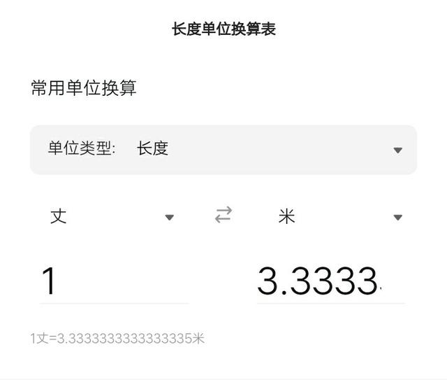 - 1丈 =3.3333米