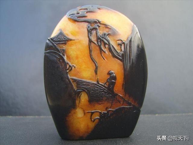黄蜡石一旦与乌鸦皮“结缘”,其雕刻价值猛增,经济价值也水涨船高。乌鸦皮的形成需要一个特定的环境,即黄蜡石掩埋于含钨、猛等物质中,经长期浸润而形成一层黑色的包裹体,其厚度不一,有的薄薄一层,有的超过一厘米。若包裹的是红色的蜡石,形成黑皮红心,叫“包公脸”,还有“黑皮黄心”的叫“乌鸦皮”、“黑皮白心”的叫“黑幽默”。国内虽然乌鸦皮品种众多,但就品质而言台山乌鸦皮品质最好。乌鸦皮之所以贵重,除了稀少外,在于雕刻出的作品艺术感染力强。