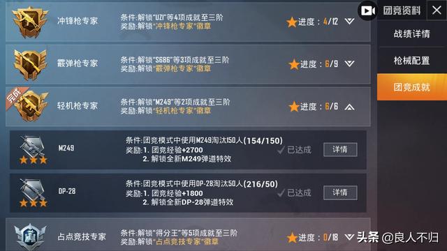 另外,关于如何“上分”:在右侧【团竞成就】里打开,白色上三角可以查询你已经完成的,在游戏前可以有选择地完成所有项目,那分自然就上去了,团竞等级也会跟着往上。