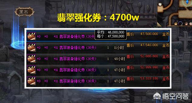 如果说,只是比钻石强化券更便宜,我们姑且可以认为只是一些玩家上架的时候定错了价格,但现在那么多的钻石翡翠强化券,竟然都比100%成功率的券子更贵,这说明什么?是谁给了他们那么大的勇气?