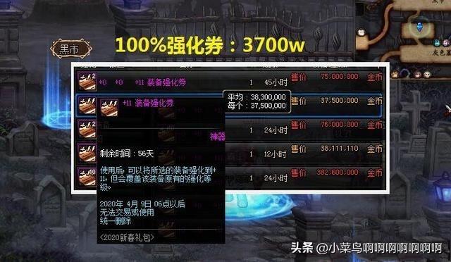 在拍卖行中,100%几率成功的+11强化卷只要3700W金币,比90%几率的强化卷要高便宜1900W,而且保质期也长高达56天,那么有玩家不禁问道明明几率高的强化卷怎么会比强化几率低的卷子便宜这么多呢?