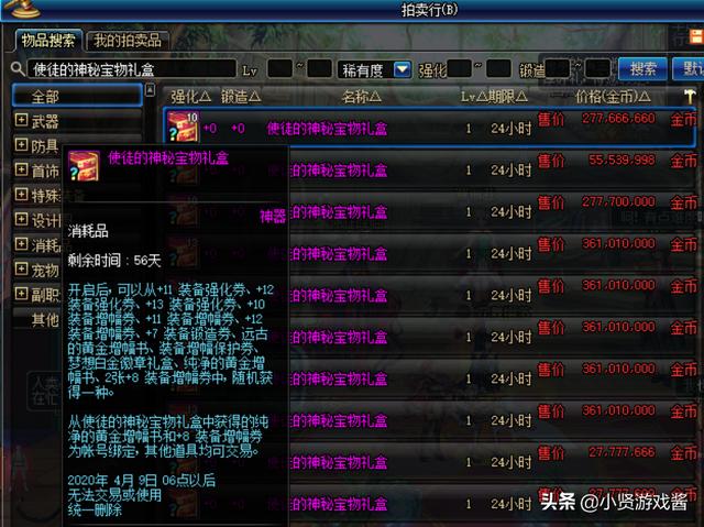 100%成功率的+11强化卷是从使徒的神秘宝物礼盒中开出来的,开出+11强化卷的玩家有的急于回本就以拍卖行的最低价格出售,还有的是土豪玩家开出来的,土豪玩家并不能不能回本,只要能卖出去就行,也就以最低价格上架了。