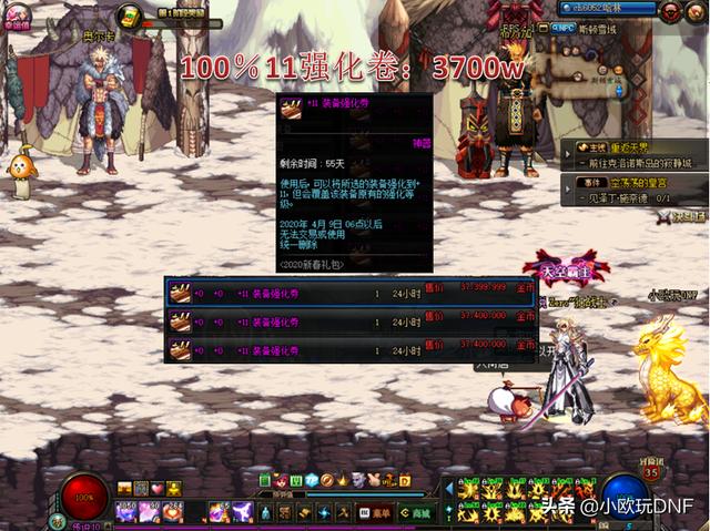 春节版本却出现了一个意外,成功率为100%的+11卷子的价格却比90%的钻石强化卷的价格低,小欧在跨六的拍卖行上面搜索了一下,+11装备强化卷的价格是3700W,这个价格对于强化脸黑的玩家来说并不算贵。