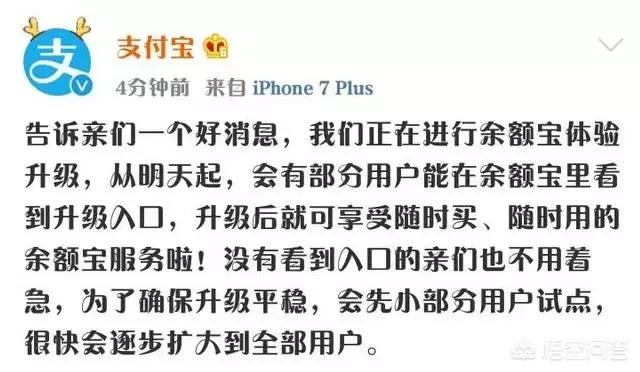 余额宝升级后,引入博时基金和中欧基金两家大型基金公司与天弘基金公司三家共同为余额宝用户提供服务。这是蚂蚁金服为践行其普惠金融服务理念的一次重塑!因为余额宝已经被限购三个多月了。至今没有解除!