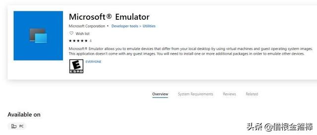 4.安装微软模拟器:打开微软商店【Microsoft Store】,搜索【Microsoft Emulator】,然后选择【获取】或【安装】。