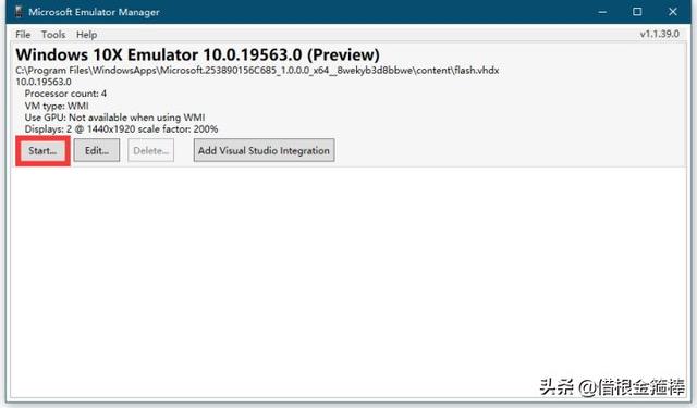 6.开启 Windows 10X 模拟器:前往【开始】菜单,选择【Microsoft Emulator】应用,选择【Start】。接下来就可以看到运行效果啦!