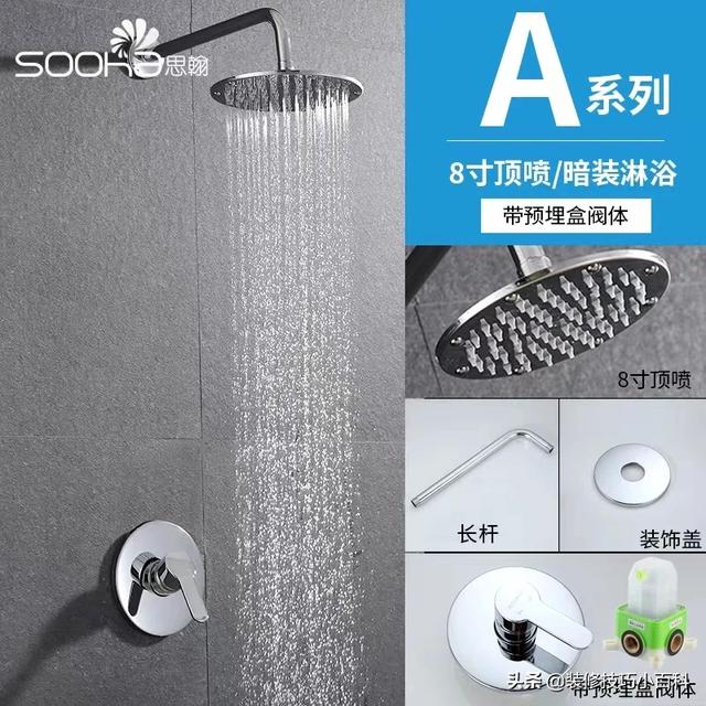 建议用成套的四件套(混水阀、大花篮、小喷头、升降杆),方便各种用途,价格稍微高点!