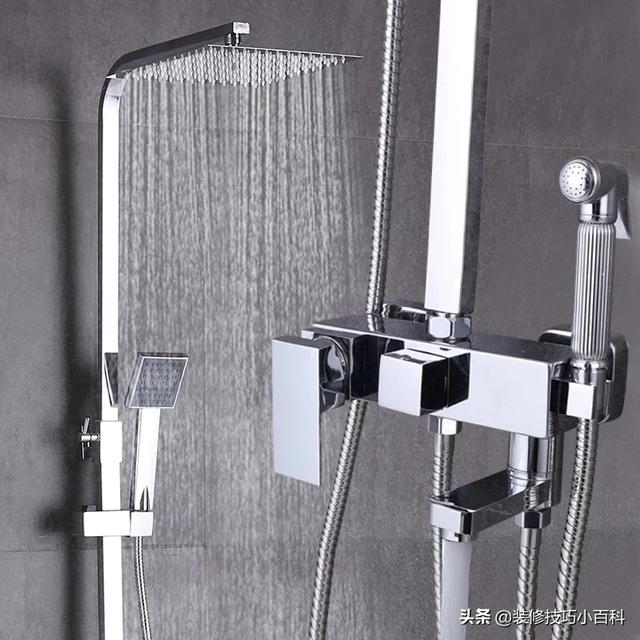 三,看功能样式。淋浴主体形式多样,功能也各不相同,有立杆花洒单用的,有加分水器花洒,喷头双用的,有下置万向龙头三用的,还有附加直喷枪四用的。视自己使用要求确定购买哪种主体。