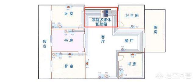 家庭网线的汇聚点可以选择在弱电箱或者多媒体箱,需要按照自己家庭的房间数量选择预埋网线的数量。