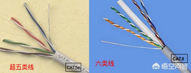 外观上,超五类网线外皮有”CAT.5e"的标识,六类网线有"CAT.6"的标识,网线中间有“十字骨架”,绕距相对于超五类网线要密集。