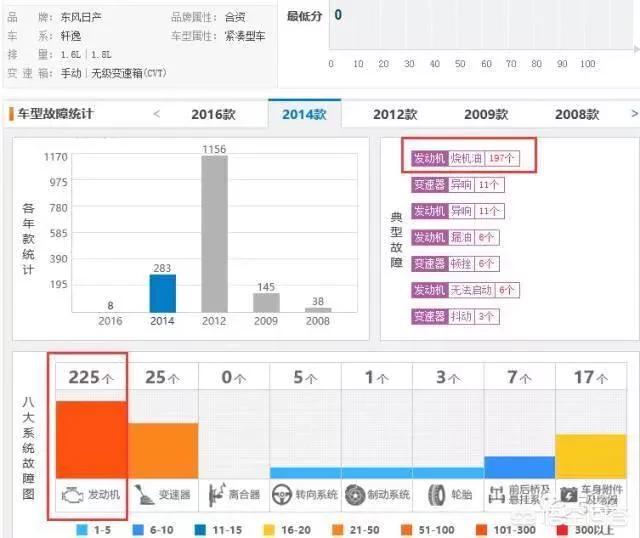 1.日产轩逸:这款车烧机油的问题已经传出很久了,轩逸的保有量很大,毕竟之前“全民滴滴”时这车是首选,一度要“加价”才能提到车。轩逸配备“HR16DE”发动机,1.6L机器出现烧机油现象,而1.8L没有问题。(如下图)烧机油的1.6L机器主要出现在2014款,而2016款上市后,烧机油的“案例”就非常少了。原因嘛我也不是很清楚,我猜测是“机油的蒸发量过大,同时油气分离PCV阀来不及排出这么多机油量,导致机油被带出发动机内部,参与了燃烧。