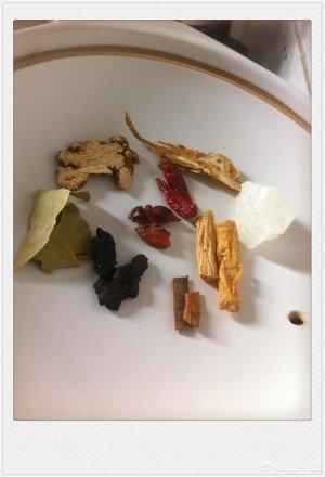 鸭子半只1.5斤川穹、当归、党参、参地、八角、桂皮、香叶半个拇指的量配料1:盐、鸡精、冰糖、生抽、老抽配料2:姜母、红酒水