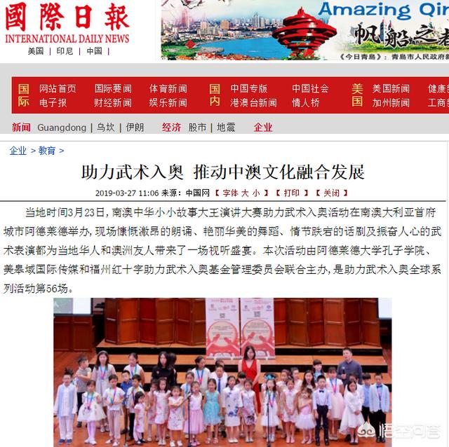 中国驻阿德莱德领事馆何岚菁总领事出席助力武术入奥系列活动全球第56场活动时鼓励,以助力武术入奥为纽带推动中澳文化融合发展。助力武术入奥(澳大利亚)推广大使、南澳大利亚武术联合会秘书长叶秉辰先生在澳大利亚传授中国传统文化的同时,把国粹武术纳入课程体系,这一文一武的配合,为澳大利亚的中国文化爱好者提供了理解与领悟的桥梁。