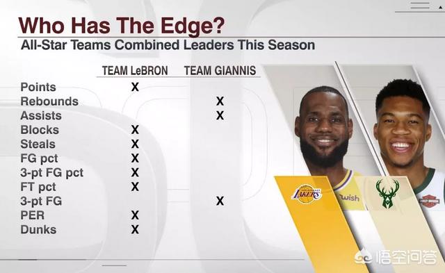詹姆斯队各位球员的综合数据在得分,封盖,抢断,投篮命中率,效率值,扣篮等数据上都占据优势,他们球队拥有联盟最出色的三位小前锋,还有联盟最出色的分位+得分王哈登,再加上欧文,戴维斯,他们都是一对一的高手,字母哥队伍在助攻与篮板球上更占优势,还有三分球命中率更好,相比于詹姆斯队,他们拥有更多的实力派球员,人气不是很高,但实力绝对过硬。