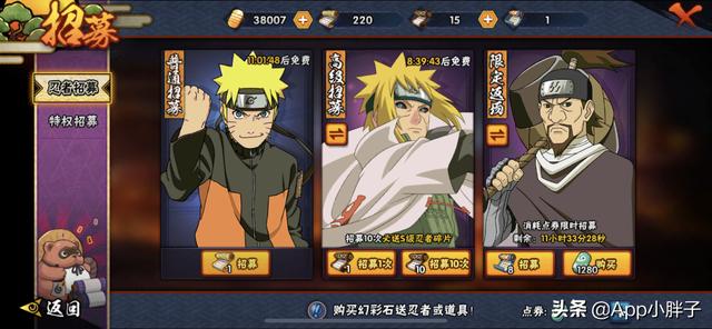 所以,正常情况下,招募高招忍者的进度和方法大概是这样的,高招A忍首付看情况处理,高招S忍首付一般是不建议错过,如果打算顺便带出上个高招S忍的话肯定是要抽的,就比如我现在这个情况下,秽土水门70来片,我即便有金币也不会直接抽,而是会等到3月高招A忍上架再抽,这样是可以拿到两个新忍者的碎片(秽土水门和3月新高招A忍),而现在抽的话,就只有秽土水门算是新忍者碎片。