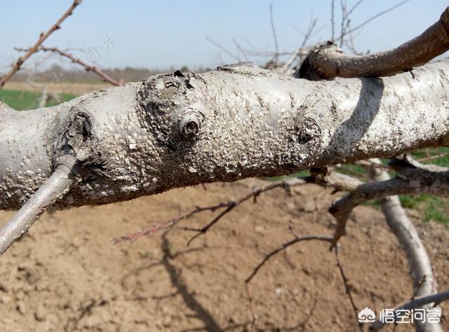 图1:大量病菌、害虫在树皮缝、枝条上进行越冬。