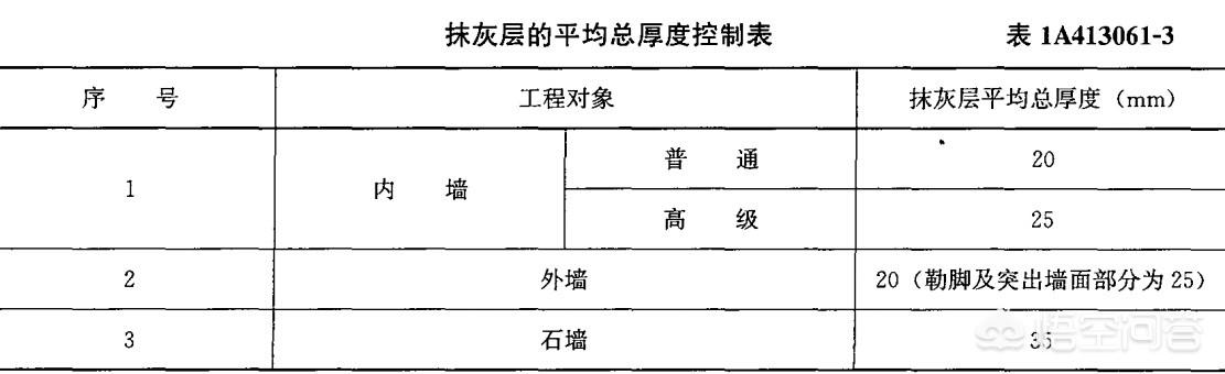 抹灰层的平均总厚度应符合设计要求。通常抹灰构造各层厚度宜为 5~7mm ,抹石灰砂浆和水泥混合砂浆时宜为 7~9mm 。当设计无要求时,抹灰层的平均总厚度不应大于如下图所示: