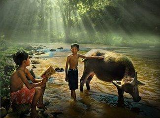 从小都受到教育,小偷针大偷金,如果真的想获得,一,要自己劳动所得,二,要诚恳向他人讨要,或者饿死不干没骨气的事。知道别人家的东西就算是块门前的石头也是他家的,因为穷大家变得自私小气,瓜田李下避免嫌疑。可离他家远处的果树还是要去冒下险,因为儿童没有陶渊明不为五斗米而折腰的气节,更没有文天祥的英雄气概,只知道偷果子并没有多大的罪恶,心里想着你家小孩难道就不会偷我家的。真正等果子熟了,很多邻居会摘些给大家分享,数量不多却增加了睦邻友好的份量,也不会拿去卖,因为农村的集市很少人掏钱去买,那时的观念有钱不如买斤肉吃,还没有饭前饭后吃点水果的意识 。90年代初期跟父亲爷爷小时候相比,已经很幸福了,不用经历吃不饱饭的日子,也不用干太多的家务活。印象最深就是放那头大黄牛,赶鸭子回家,井里打水烧火煮饭等爸妈回家炒菜。往往夜幕快降临时,才能看到爸妈扛着柴,或者挑着担,拖着疲惫地身体,从山上的土道徐徐走来。