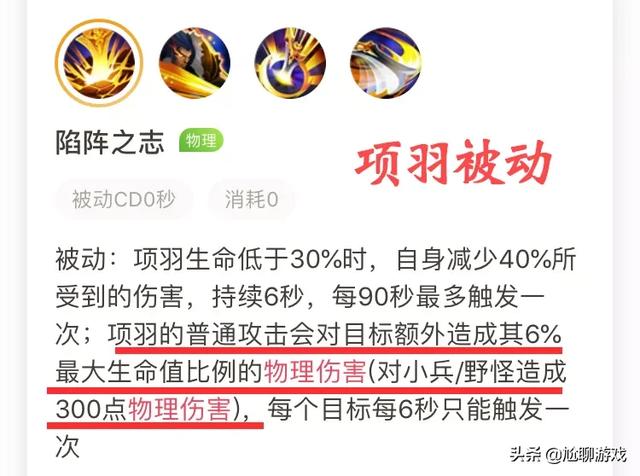 项羽的普通攻击同样附带百分比额外伤害,与盾山不同的是,项羽普攻百分比伤害计算对象为敌方单位。其普攻伤害构成为:常规物攻数值+敌方单位最大生命值6%的额外伤害。