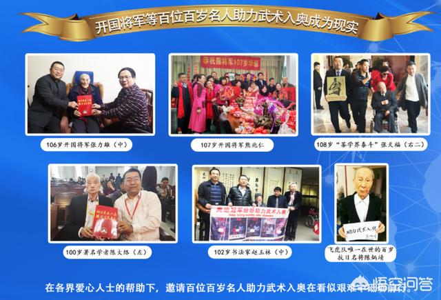 2、开国将军等百位百岁名人助力武术入奥成为现实。