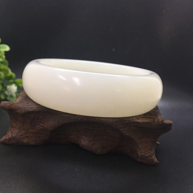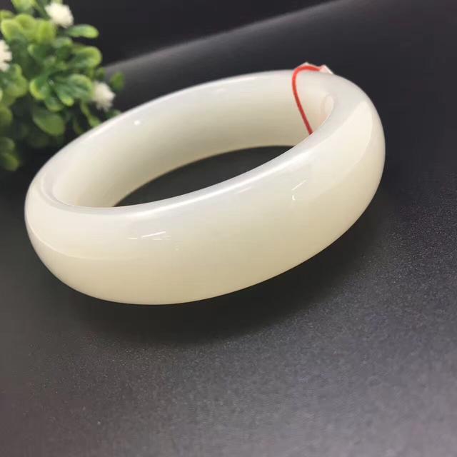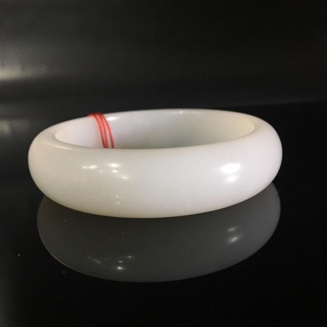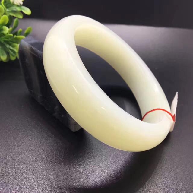 这款手镯是青海料哑光,玉友们可以对比下前面玻璃光的青海料,直观感觉很多人都以为是俄料,我说的是实物。这种哑光的抛光手法掩盖了青海料的水头,增加了玉的油性。
