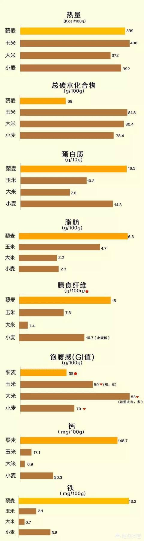 藜麦含有完全蛋白,含量高达13-22%;藜麦不含麸质;藜麦低升糖(GI值35);藜麦富含膳食纤维和B族维生素;藜麦中铁锌镁钾钙硒锰的含量高于谷物类食物。
