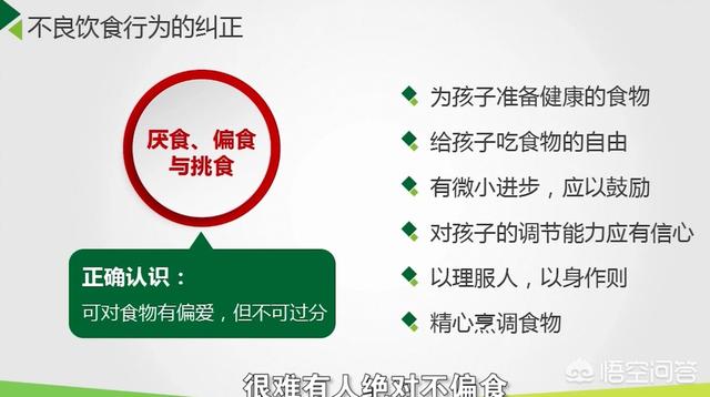 应该从小让孩子养成正确的饮食习惯。从小给孩子提供丰富多彩的饮食,不要评价什么好吃,什么不好吃,如果在这个时候加以分别,孩子就会偏食。