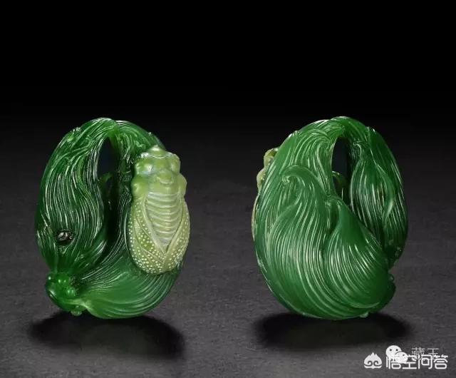 和田碧玉,成分较杂,颜色不均,呈鲜艳菠菜绿,质地不及青玉,但产量少,价格高。