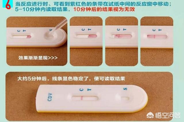 诊断:本病根据以上症状,即可初步确诊。现在有犬瘟(CDⅤ)试纸,按图中操作。C杠是对比杠,T出现红色杠为阳性(两道杠),是犬瘟热。