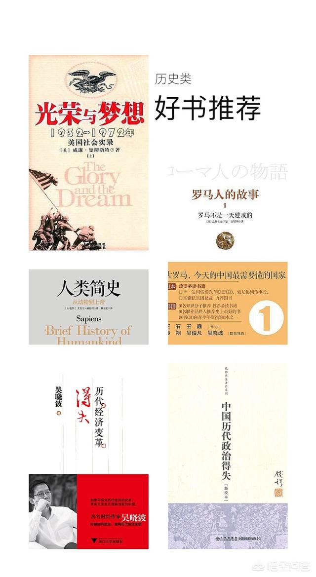 对于具体的历史作品呢?如果提问的攻城狮朋友依然想要关注细节,我建议还可以读读的书籍包括但不限于这样的几本书,中国历史:《史记》(司马迁)、《中国历代政治得失》(钱穆)、《中国大历史》(黄仁宇)、《万历十五年》(黄仁宇)、《历代经济变革得失》(吴晓波)。外国历史:《光荣与梦想 : 1932-1972年美国社会实录》、《罗马人的故事》(盐野七生),都是我读过,感觉受益良多的优秀作品。属于比较通俗易懂,而且足够增加提问人知识面的经典书籍。