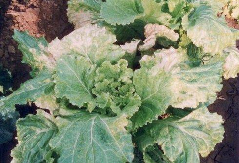 白菜霜霉病的症状:从苗期到开花期、结荚期都有发病,但以成株片受害最重。