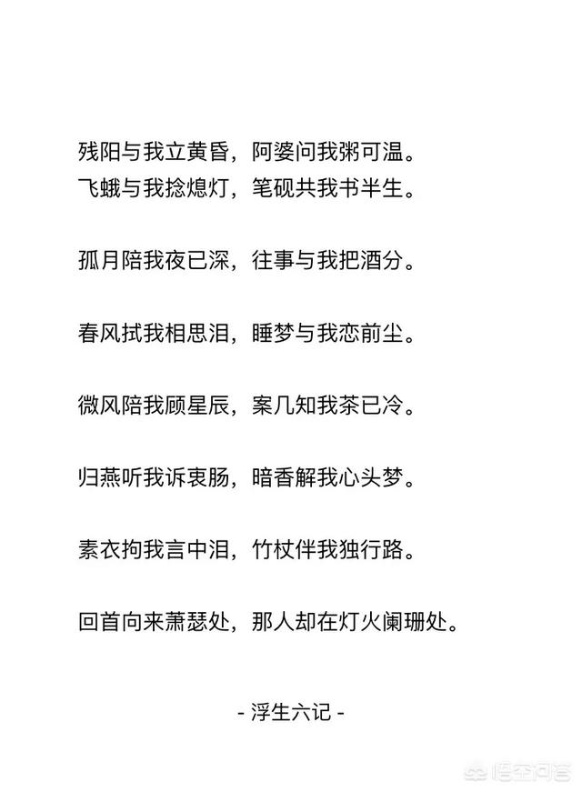 浮生六记中,沈复的一生穷困潦倒,妻子生病了都没钱去治疗。有时候我也会害怕自己的晚年会不会也是这样一个人孤独的走完这一生。正应了那句话:如果注定孤独终老,请不要让我长命百岁。