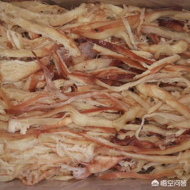 用它抄韭菜和溜白菜汤,口味非常鲜美,人们也把它煮熟加工拆成一丝丝干货品,它就是市场上常看见的干鱿鱼丝!地道加工好的鱿鱼干鱼丝价格挺贵,烧烤,凉拌,口味也非常不错!
