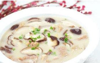 香菇鱿鱼汤:水发鱿鱼肉100克,泡发香菇50克,虾仁20克,肉末20克,冬笋片30克,料酒,味精,白糖,葱末,精盐,胡椒粉,水淀粉,植物油适量。