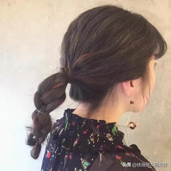 最简单利索的除了马尾,还有大概就是马尾编发了。将所有头发在头顶梳一个紧实的马尾之后再编一个简单的麻花辫就能够清凉一夏了。