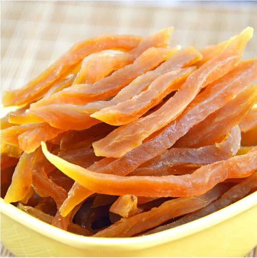 2:小时候家里把吃不完的红薯晒红薯干,先把红薯隔水蒸熟,蒸好了去掉外衣,切成片或条,放到阳光下晒2~3天,红薯干香软有嚼劲,是小时候最爱的零食了