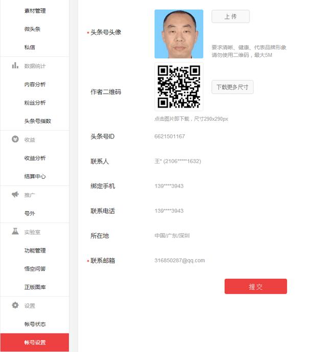点开账号设置,就有页面显示自己的二维码和头像。