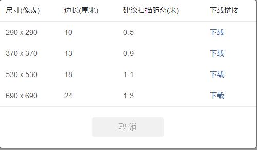 在自己的二维码旁边有现在更多尺寸的选项,点开后下载你自己需要的尺寸。