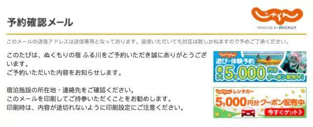 点击最后的确认画面即预订成功,Jalan会发送邮件至你的邮箱。