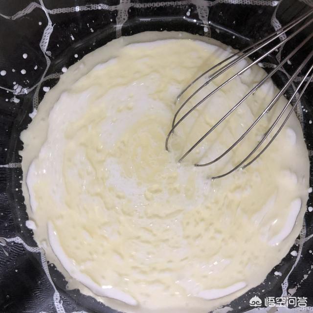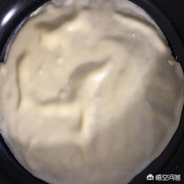 7。如图,面糊开始起泡。说明饼皮已经烙好了。