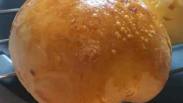 揉成光滑面团儿放到温暖处发酵,发酵完成,排气分成小团儿,进行第二次发酵,发到两倍大,在面团上喷水,刷一层蛋液,再喷一层水,如果想让面包的表皮软一点,就多喷点水(也不要太多)入烤箱150°烤15分钟,稍微上色就可以了。